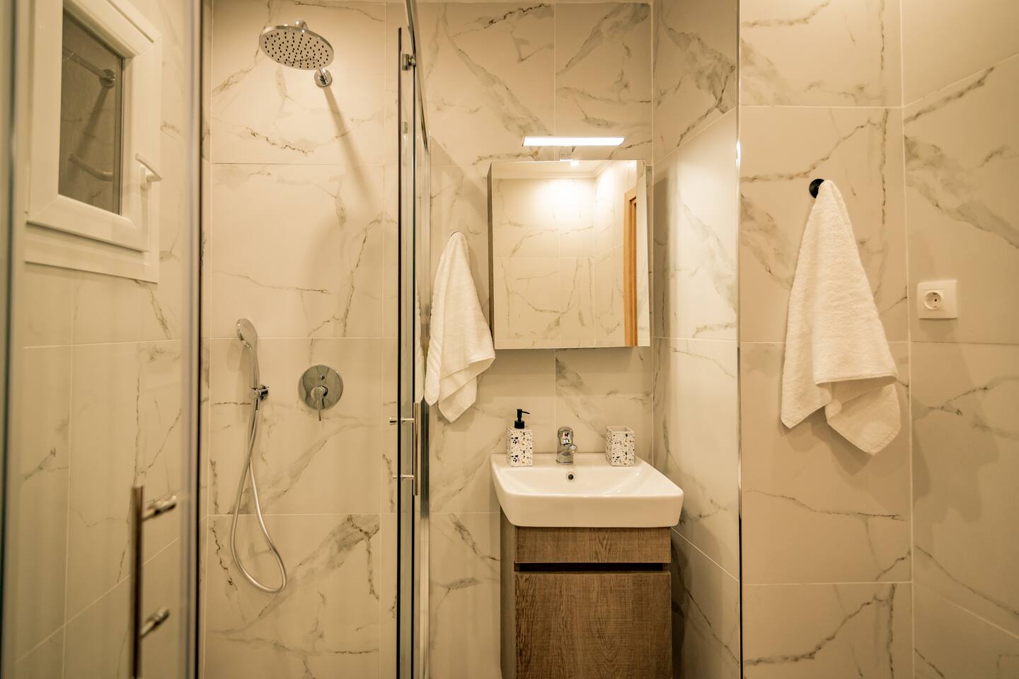 The fully equipped kitchen allows you to prepare meals with ease, while the modern bathroom is stocked with quality care produ