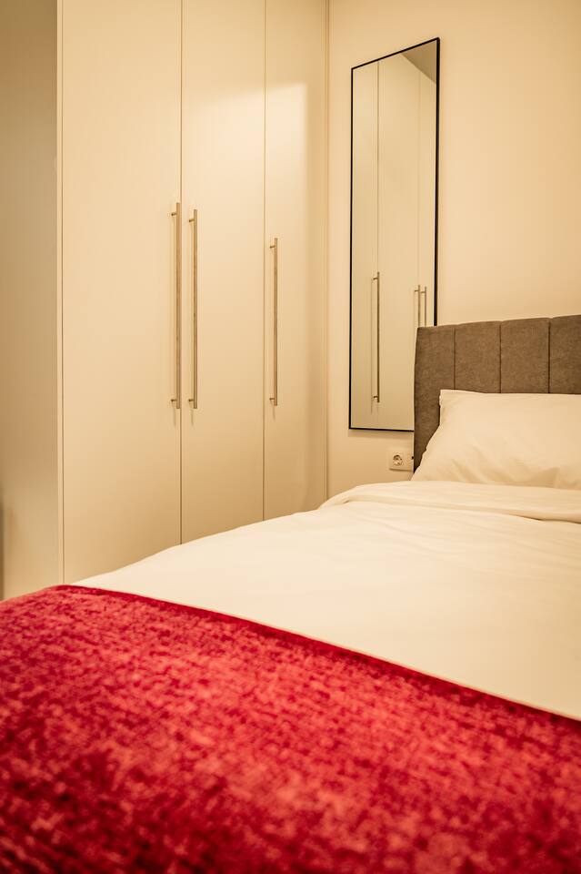 The apartment comfortably accommodates up to 7 guests and features three bright bedrooms, each thoughtfully equipped with comfortable beds and dedicated work desks, making it ideal for families, groups of friends, or professionals working remotely. The cozy living room includes a Smart TV and a sofa bed, perfect for relaxing after a day in the city.